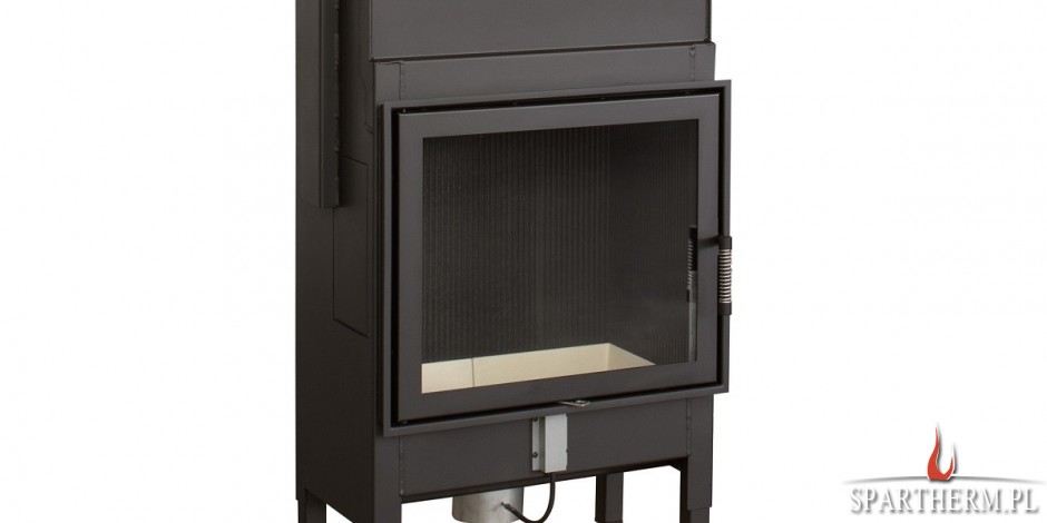 Kompaktowy wkład kominkowy z prostą szybą otwieraną na bok. Kominek występuje w wersji z rączką po lewej i prawej stronie.